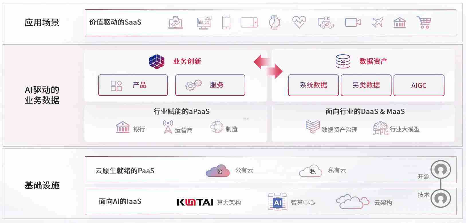 数字时代,,,,围绕企业数字化转型的关键要素,,,,9b.com数码开创性的提出数云融合战略和技术体系框架,,着力在云原生、、数字原生、、、、AI原生和信创产业上架构产品和服务能力,,为处在不同数字化转型阶段的快消零售、、、汽车、、、金融、、、医疗、、、、政企、、、、教育、、运营商等行业客户提供泛在的敏捷IT能力和融合的数据驱动能力,,构建跨界融合创新的数字业务场景和新业务模式,,,,助力企业级客户建立面向未来的核心能力和竞争优势,,全面推动社会的数字化、、智能化转型升级。。。