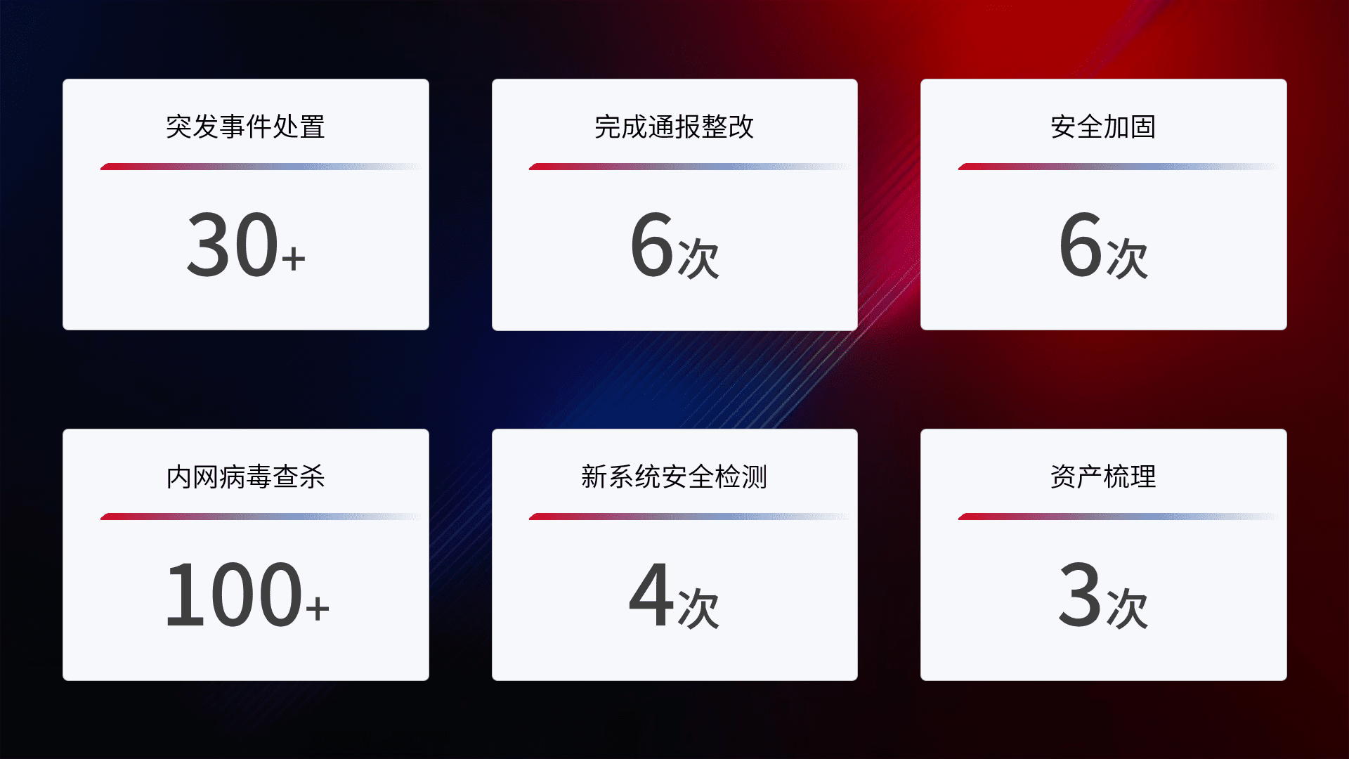 网络安全加固与风险管理:通过技术加固手段,,,如加强区域隔离,,缩减攻击内网横向移动的范围;优化现有网络安全管理制度,,降低网络威胁暴露面,,减少被黑客攻击的可能性。。